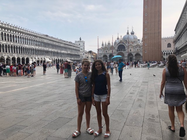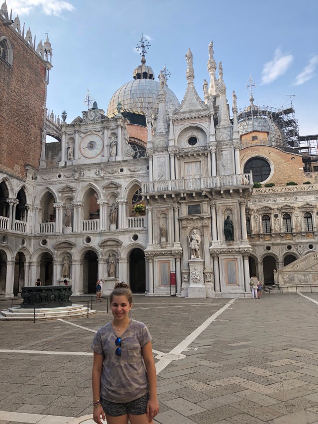 For lunch we went to a Italian restaurant (no surprise) where we got pizza, pasta, and salad. It was good but I think we will be having better. After lunch we walked through St. Marks square and we visited Doge’s Palace. It was a huge fancy palace and we took an audio tour. Lastly, we took a tour in a gondola boat through the canals.