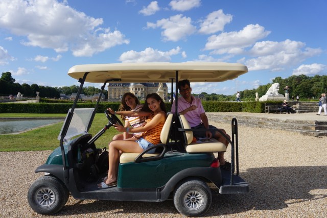 After we said our final goodbyes to our hotel and Paris, we got into our rental car and headed to our next stop, Vézelay which was about a 3 hour drive. But don’t fear, we broke up our trip with a stop at a Château called Vaux-le-Vicomte. We weren’t planning on staying too long, but we got carried away it was so beautiful. First, we took an AMAZING audio tour through the inside of the castle. Who knew an audio tour could be so high-tech? It had 3D audio and the whole tour was a story told by characters from the castle’s time. Each room was the next part of the story with informational tidbits woven in. Besides from the actual Chateau, the place had beautiful gardens and fountains. We got to take a golf cart all around the place which was lots of fun.