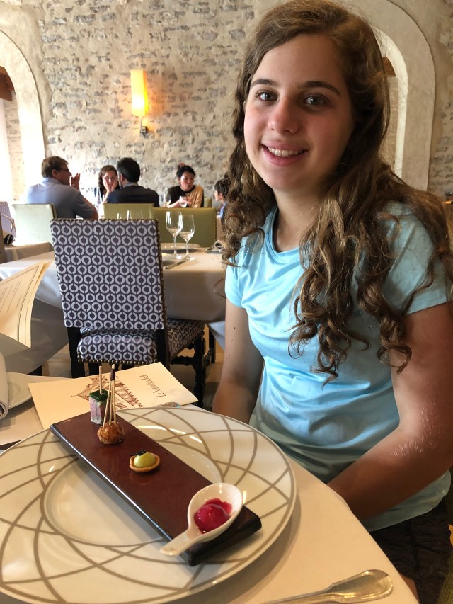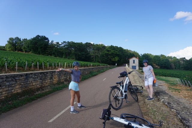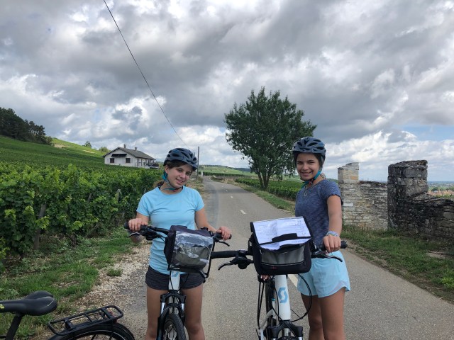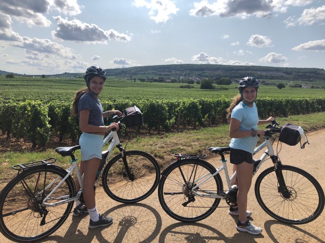 Yesterday, we had a wonderful day in Beaune. We rented electric bikes and got to ride through the vineyards and villages around Beaune. The bike path took us from village to village and in between the villages were just fields of vineyards. Also, our electric bikes were really helpful and fun to have. They work just like a normal bike but every time you pedal they move for you. The path was nicely marked with green bike signs through the villages, giving us a great tour of the wine country. To top off our beautiful bike trip, we got to stop for lunch in one of the villages we passed through at a restaurant called Le MontraChet. (A Michelin star restaurant) It’s a really expensive restaurant for dinner but for lunch they have a price fixed menu. The food was incredible and the service was amazing. All in all a delicious and special meal. After lunch we headed back through the vineyards back to the bike rental store. This bike trip was definitely a highlight of our trip so far.