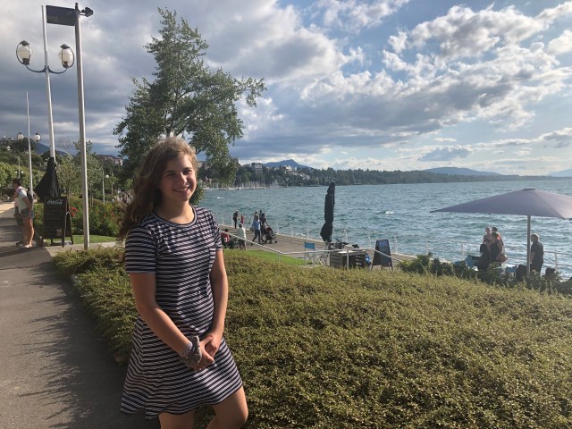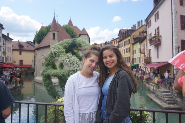 Ok, back to Charlotte: The next morning, we woke up, had some breakfast in town, grabbed some coffee, and looked at the bikes we were planning on renting the next day. Afterwards, we went to Annecy and walked around, sitting down at a lunch place that had a rude man as a waiter. After lunch, we kept on walking and had ice cream that served Oreo as one of their flavors (Charlotte was very happy since Europe doesn’t serve Oreo as an ice cream flavor normally.) Dadam attempted at hosting a walking tour but failed. Annecy looks a little like Venice. It has a canal through it and has cute old buildings. After seeing the beautiful, old, but crowded Annecy, we went back to the hotel, got our bathing suits on, and went swimming in the lake. Dadam wore his new bathing suit! (This is very exciting because he has not purchased a bathing suite since like the time we were born.) We also swam in the hotel’s indoor pool, and then went to our room to get ready for dinner.